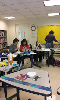Today we had the privilege of having Nancy Fried-Tanzer come to our class and lead our students and parents in making tallitot. Our students picked out backgrounds they wanted to use for the panels at the edges of the tallitot and atarah, the part over the neck, came up with the design they wanted to use, and got started using the different felt patterns Nancy had brought to cut out the shapes and letters they wanted on their tallit. It was such a pleasure seeing everyone’s creativity shine through- from suns to arks to leaves and doves, Jerusalem and even designs straight out of Dr. Who, we had some expert artists at work! And it was wonderful having so many of the parents with us, helping and guiding the projects.