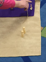 I did the GODLY PLAYlesson on Purim. As you can see by the photos below, I tell the story, using simple wooden figures and little scenery, so that each student can imagine what it looks like. After the story, I ask “wondering” questions like which part of the story did you like best, where do you see yourself in the story, what part was exciting, etc. The students are very attentive and have thoughtful answers to the questions.