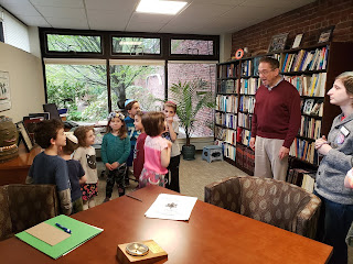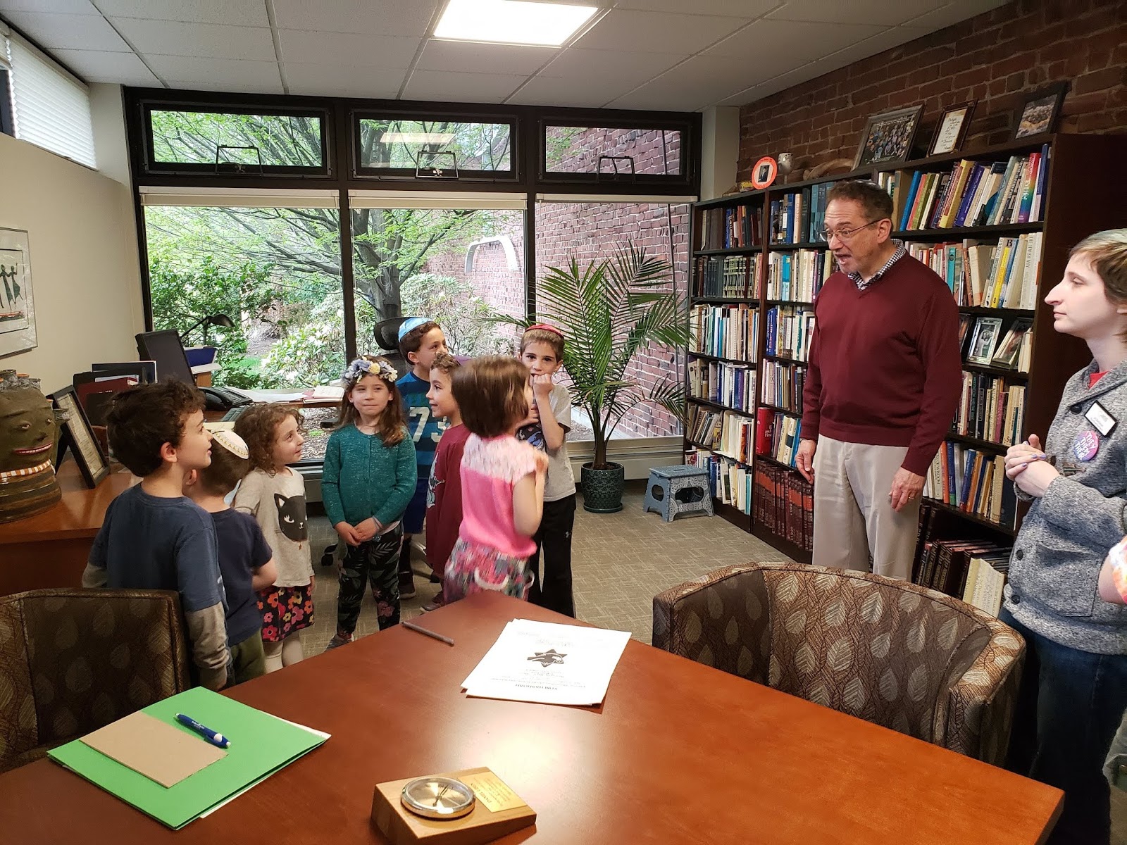 We were so lucky today to unexpectedly meet up with Rabbi Liben in the Chapel. He helped us make observations about the space and just like in the ark in the Sanctuary there was a shofar inside the Chapel ark. Every student got to try to blow the shofar. Ask them what sounds the shofar made when they tried!
